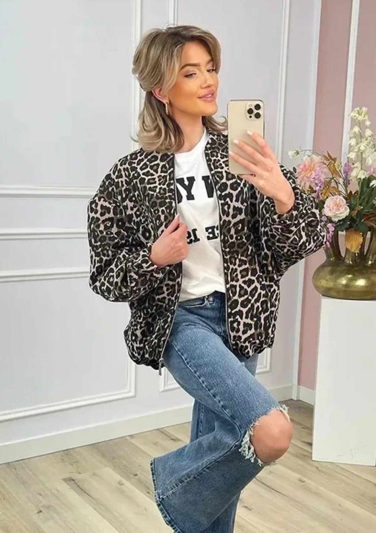 From city streets to dinner nights, the Veya Leopard Print Bomber Jacket delivers bold style and all-day comfort—an essential piece for the modern wardrobe.