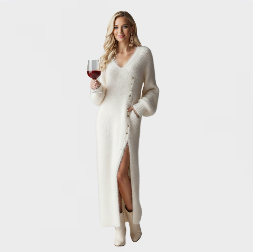 The Brianna | Holiday Lounge Dress is made for everything we love about the holiday season — twinkling lights, crackling fireplaces, and those moments when you want to feel warm, confident, and effortlessly stylish. This soft, fluffy knit wraps you in comfort while giving you that elevated, festive look that feels so right for winter.