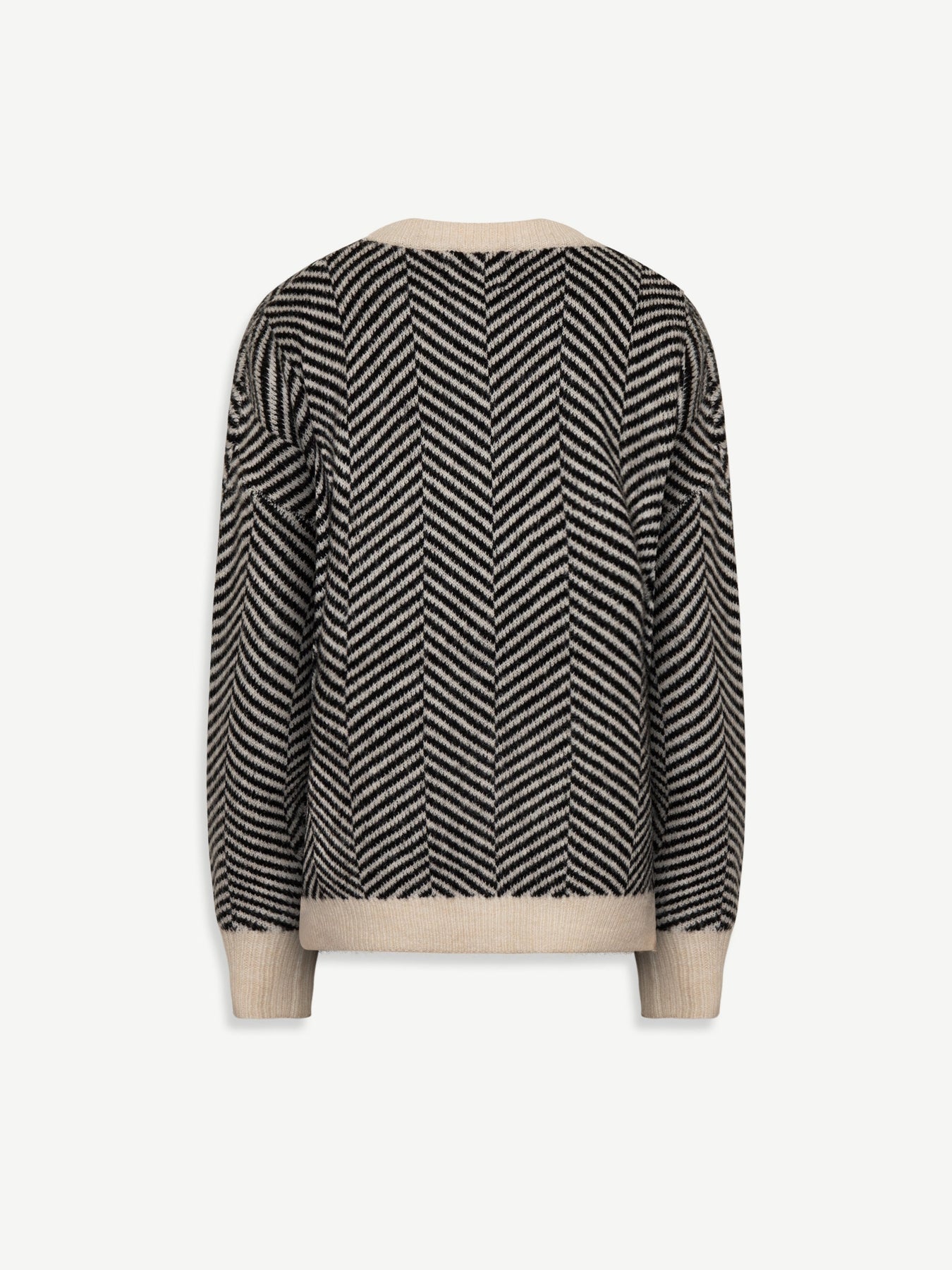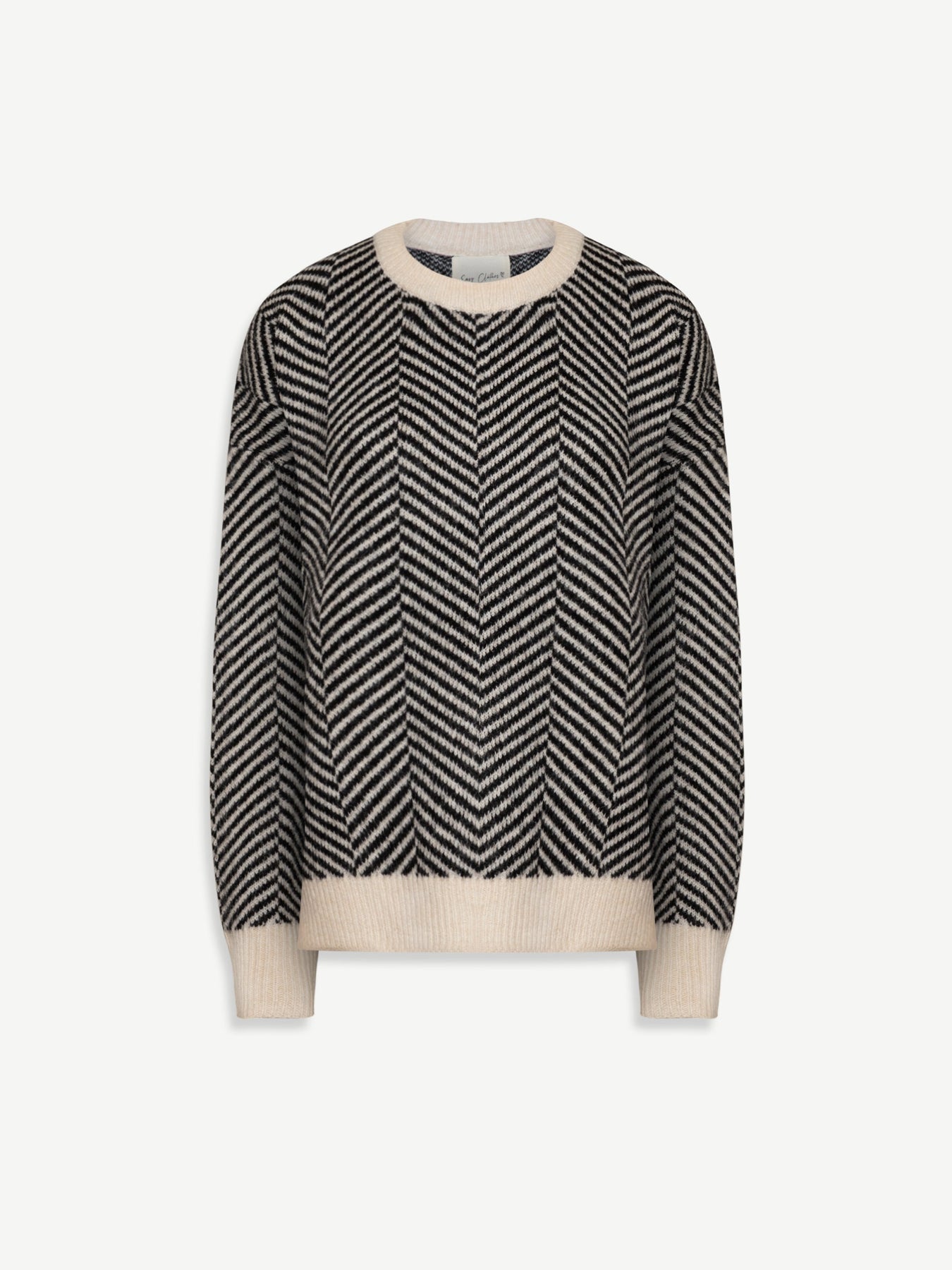 The Rihanna Sweater is a tribute to refined femininity and subtle strength. Its ecru-and-black pattern flows with musical elegance, creating a statement piece that is both sophisticated and versatile. Designed for women who seek style that speaks quietly but leaves a lasting impression.